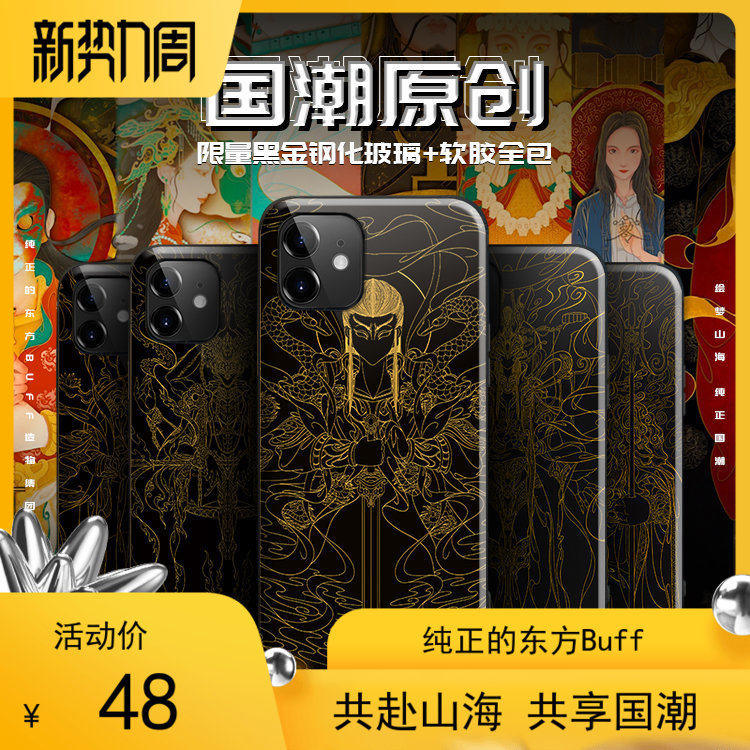 绘山海限量黑金多种机型定制新款国潮中国风防摔钢化玻璃手机壳热门设计联盟服务商