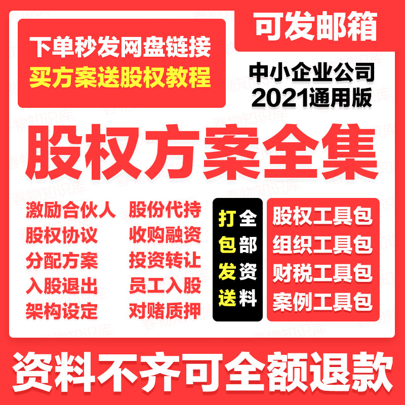 股权方案工具包协议合伙人股权激励退出分配入股分红设计制度架构热门设计联盟服务商