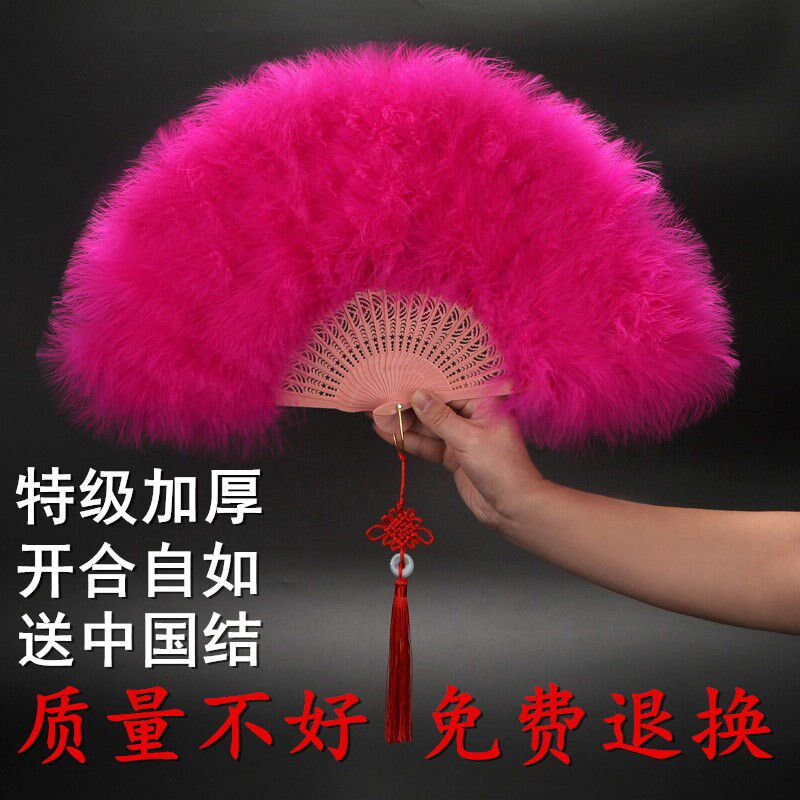 羽毛扇子团购走秀广场舞蹈扇子全绒加厚成人旗袍大号跳舞表演折扇热门设计联盟服务商