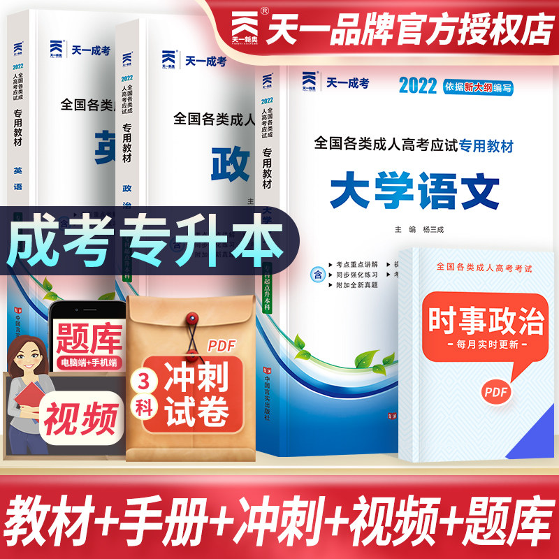 天一成考专升本2022年成人高考专升本科考试教材历年真题试卷高等成人教育政治英语高等数学一二大学语文医学艺术教育网课复习资料热门设计联盟服务商